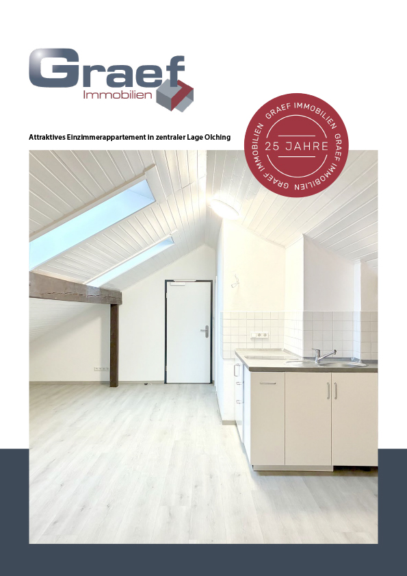 Dieses attraktive Einzimmerappartement befindet sich im Dachgeschoss eines gepflegten 3-Parteienhauses in Olching und überzeugt durch seine moderne Ausstattung sowie eine durchdachte Raumaufteilung.