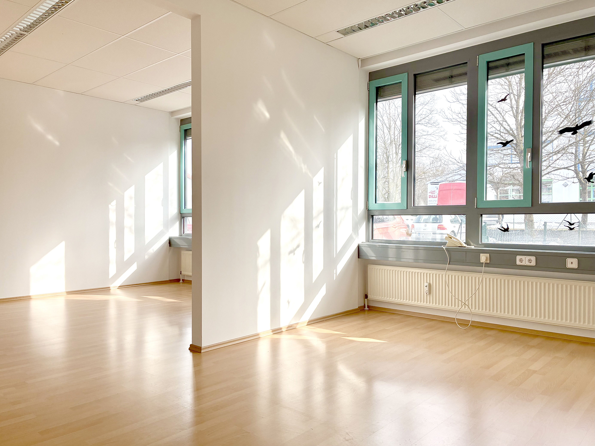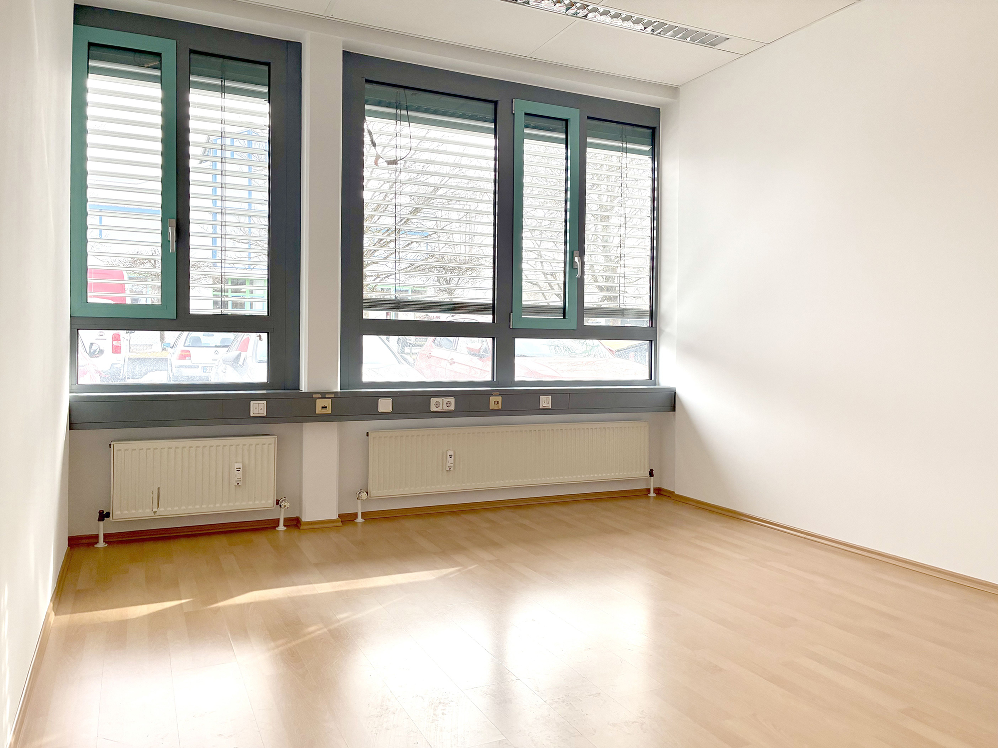 Große Fensterflächen schaffen helle, freundliche Büroräume und bieten gleichzeitig durch elektrische Rollläden einen komfortablen Sonnen- und Sichtschutz.