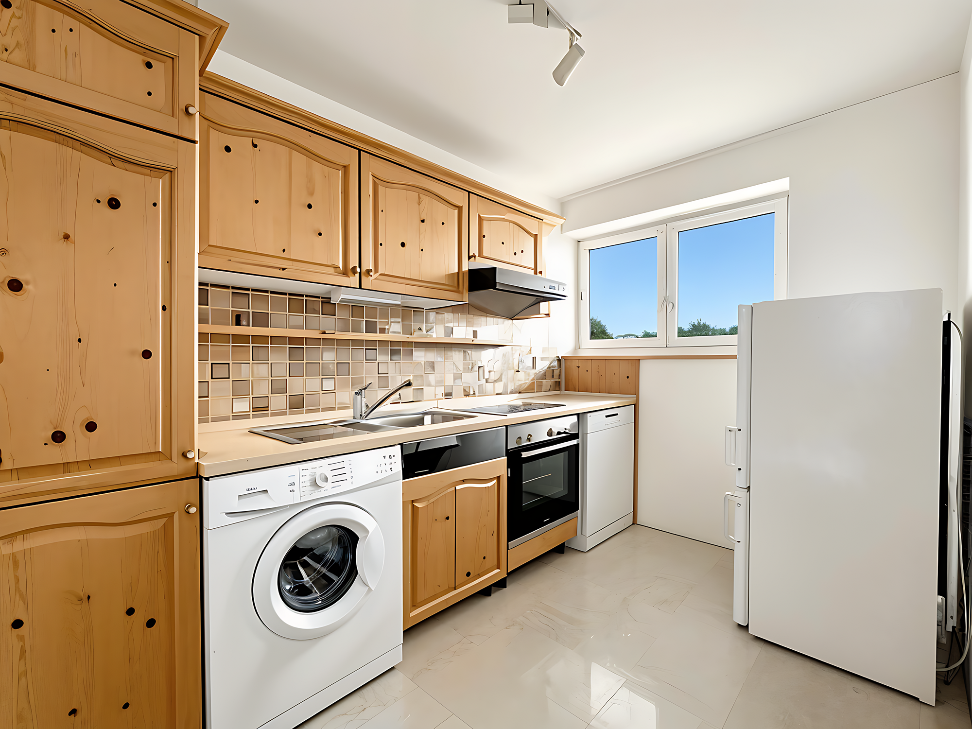 Die Wohnung besticht durch ihre Süd-West-Ausrichtung, die eine gute Belichtung gewährleistet. Großzügige Fensterfronten bieten viel Tageslicht und schaffen eine warme, einladende Atmosphäre.