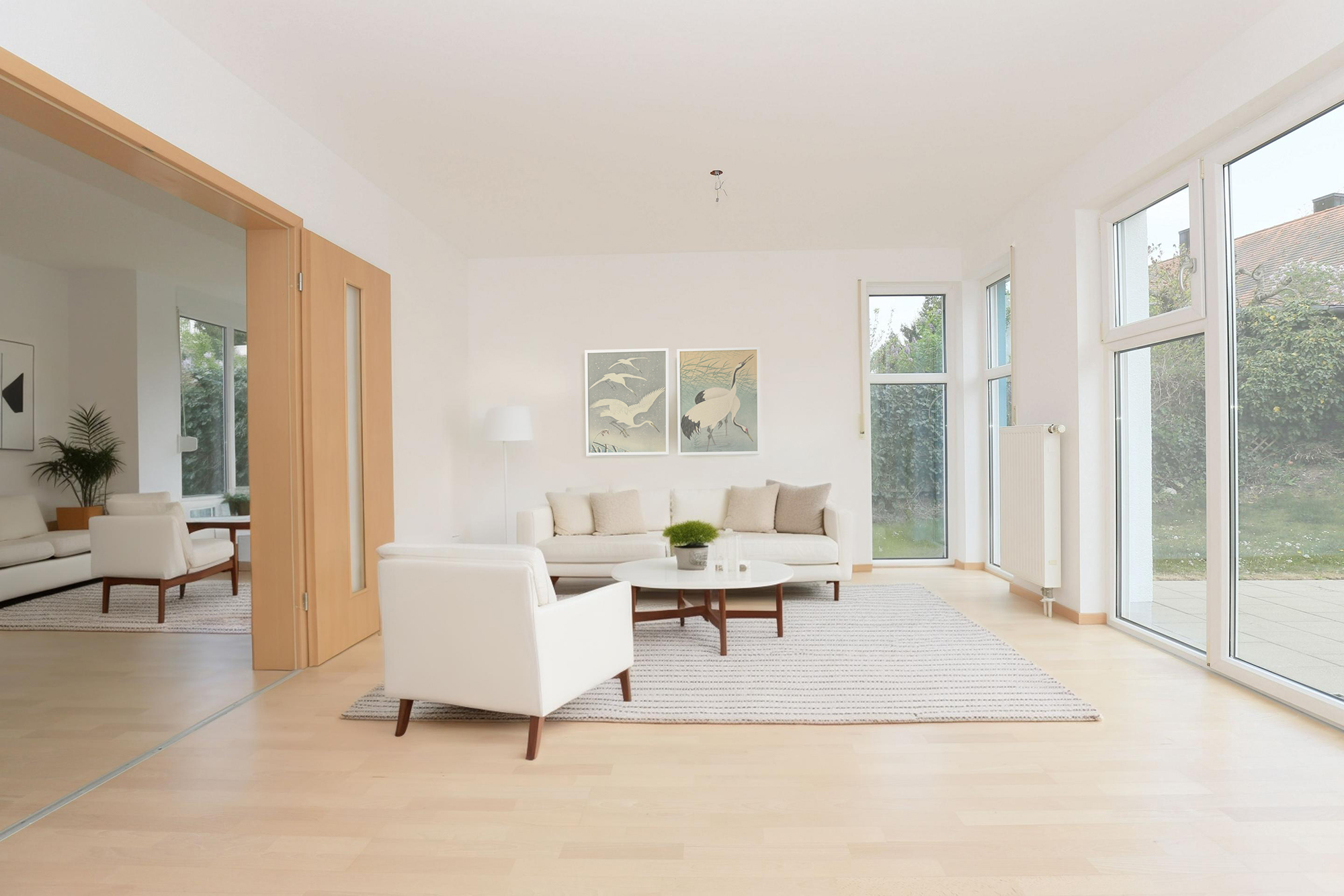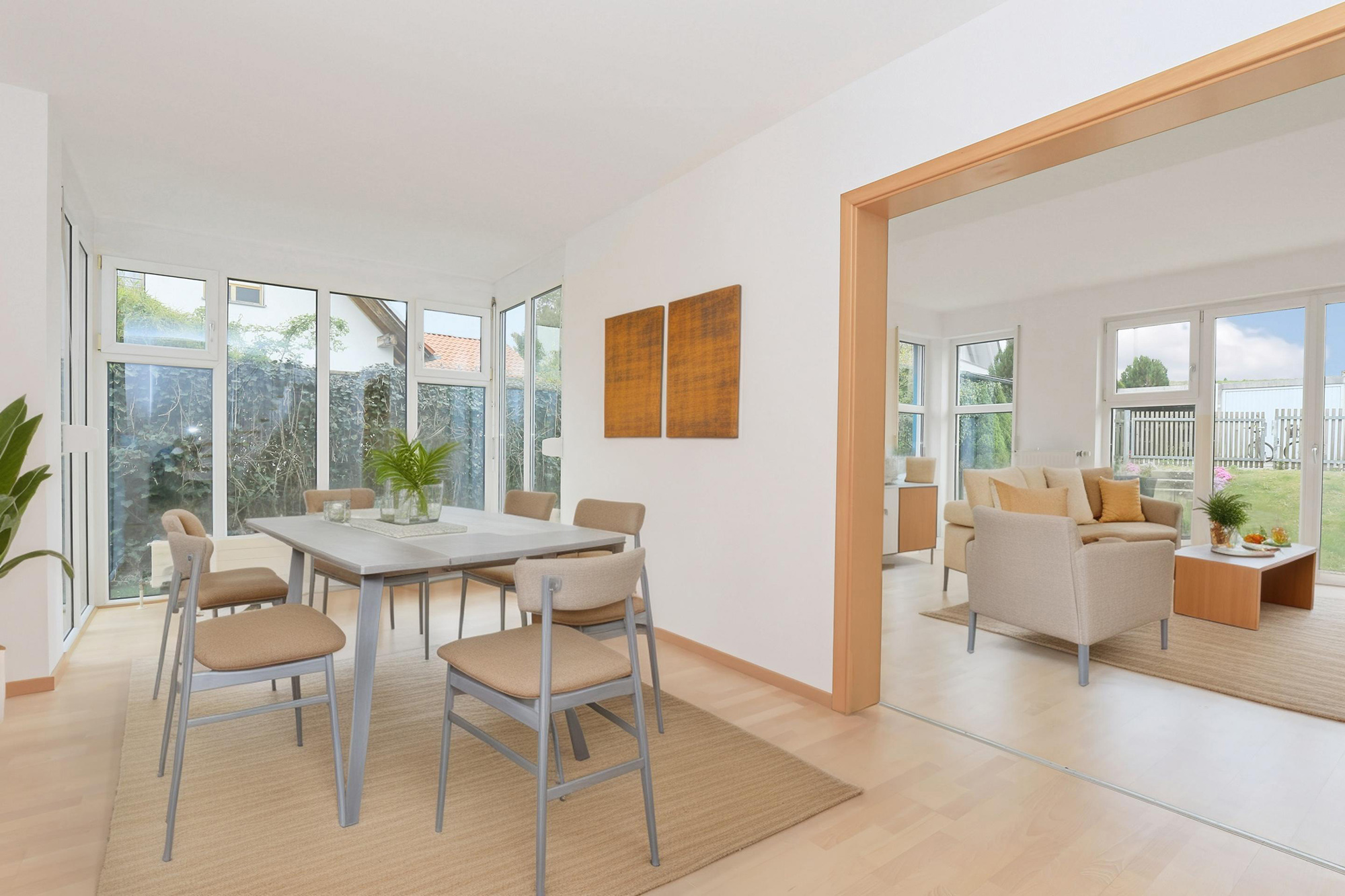 - Lichtdurchfluteter Wohn- und Essbereich mit angrenzender Küche