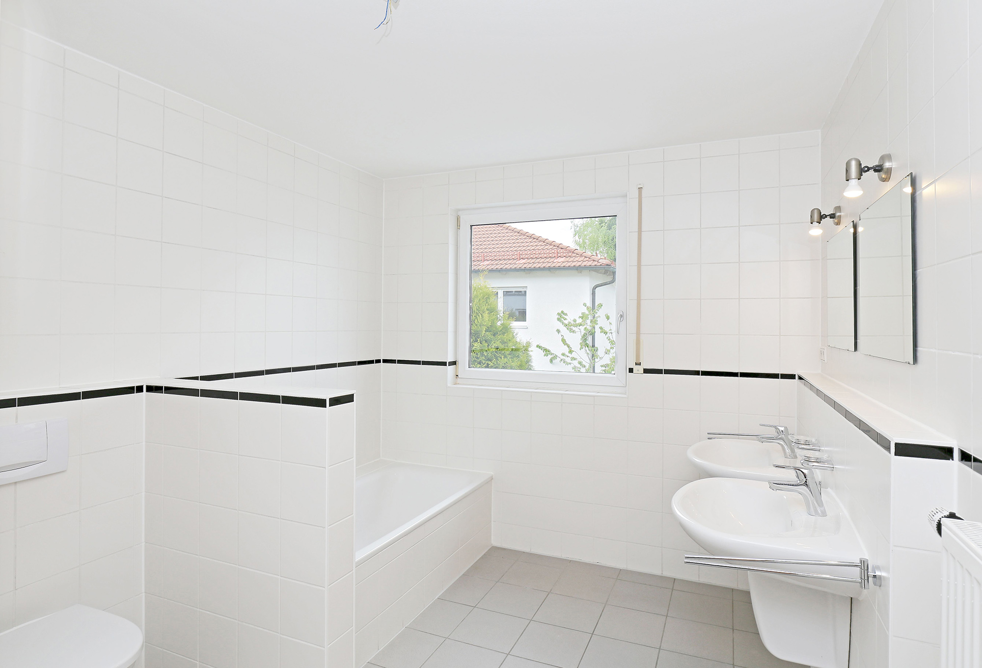- Großes Badezimmer mit Wanne, Dusche und Doppelwaschbecken