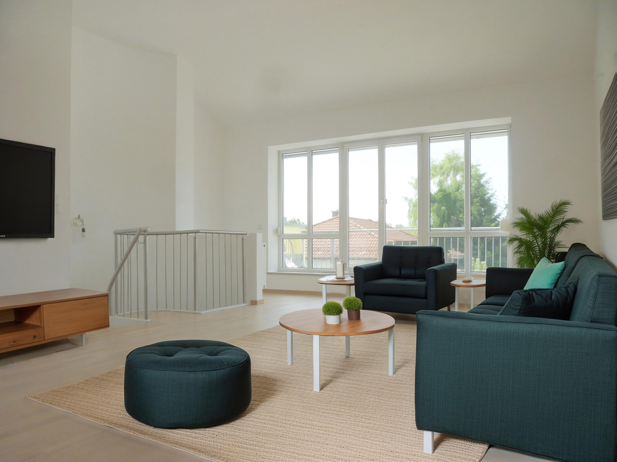 ausgestattetes Badezimmer mit Badewanne und Dusche – optimal für Familien und individuelle Nutzung. Das Dachstudio erweitert die Wohnfläche flexibel und eignet sich hervorragend als Homeoffice, Gästezimmer oder Hobbybereich, je nach Bedarf.
