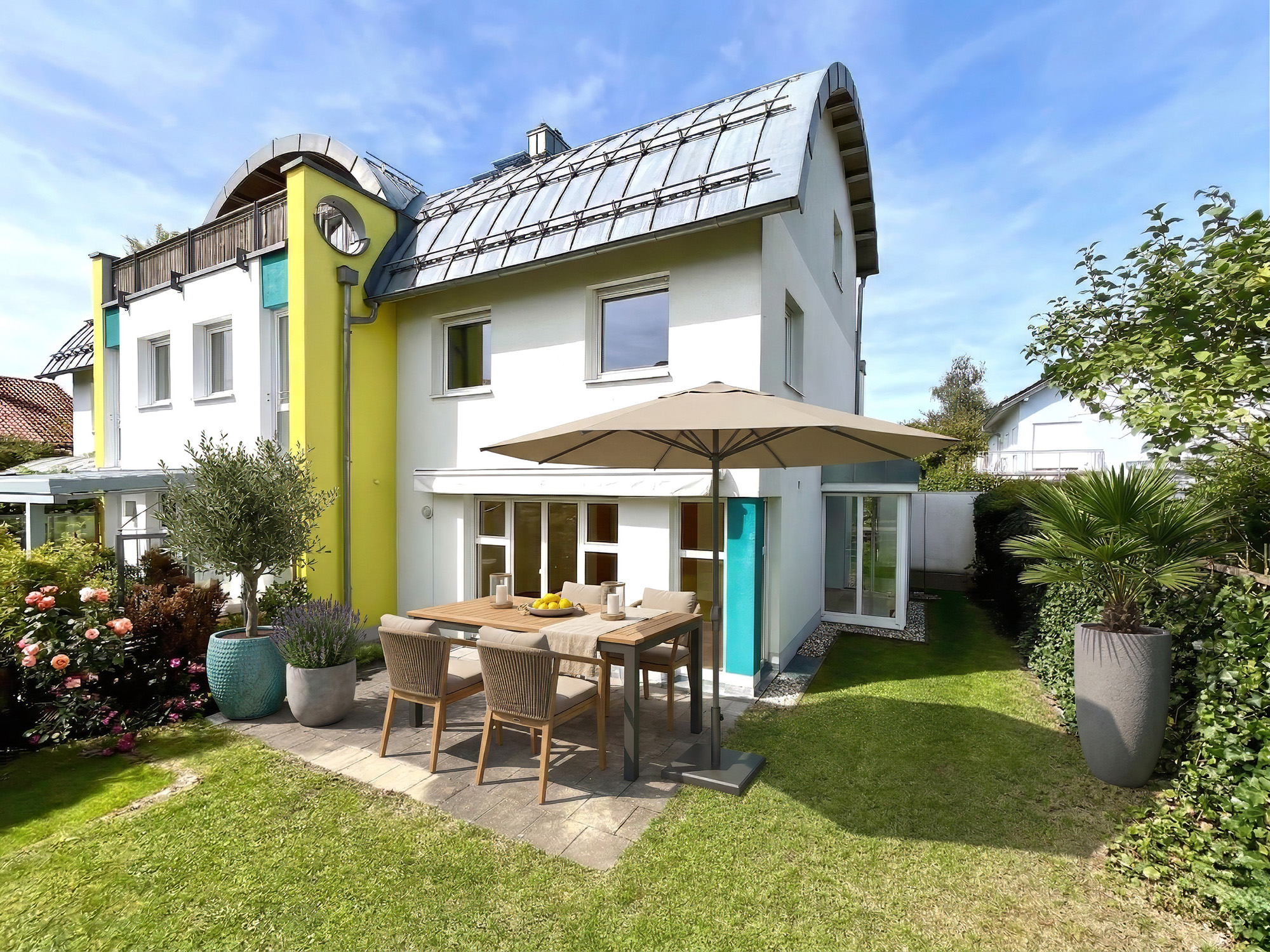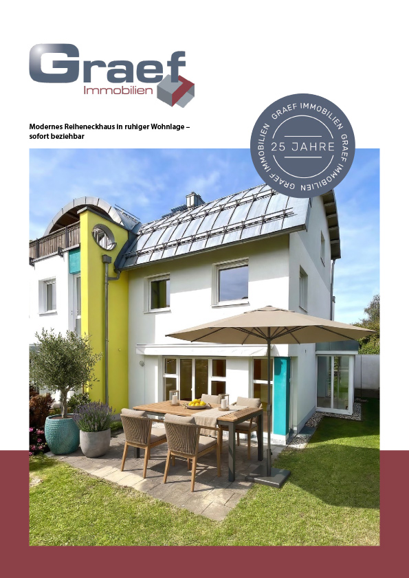 Dieses moderne Reiheneckhaus besticht durch seine zeitgemäße Architektur, viel Tageslicht und ein ausgesprochen angenehmes Wohnambiente – ideal für Paare und Familien, die Wert auf Qualität, Komfort und charmante Außenbereiche legen.