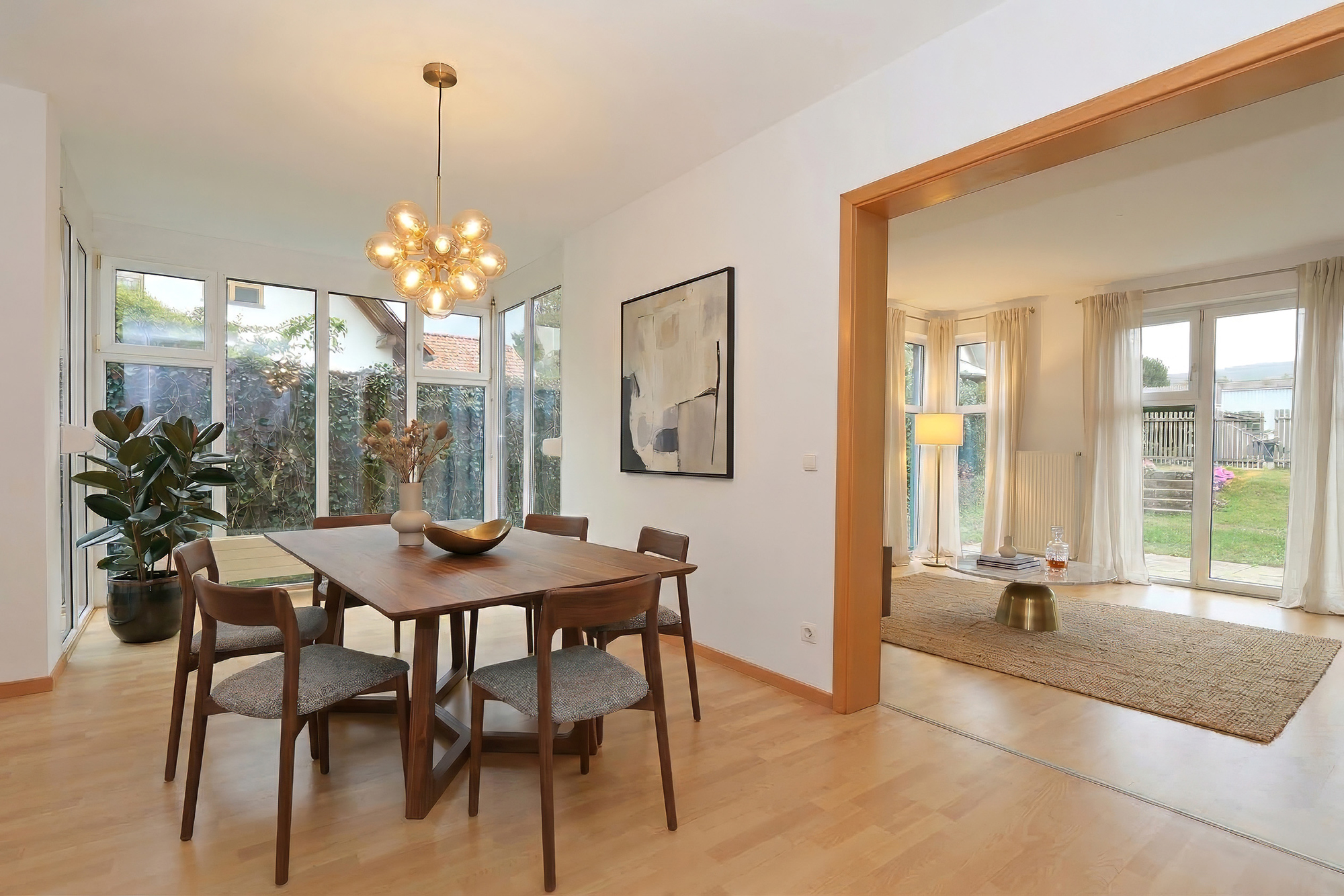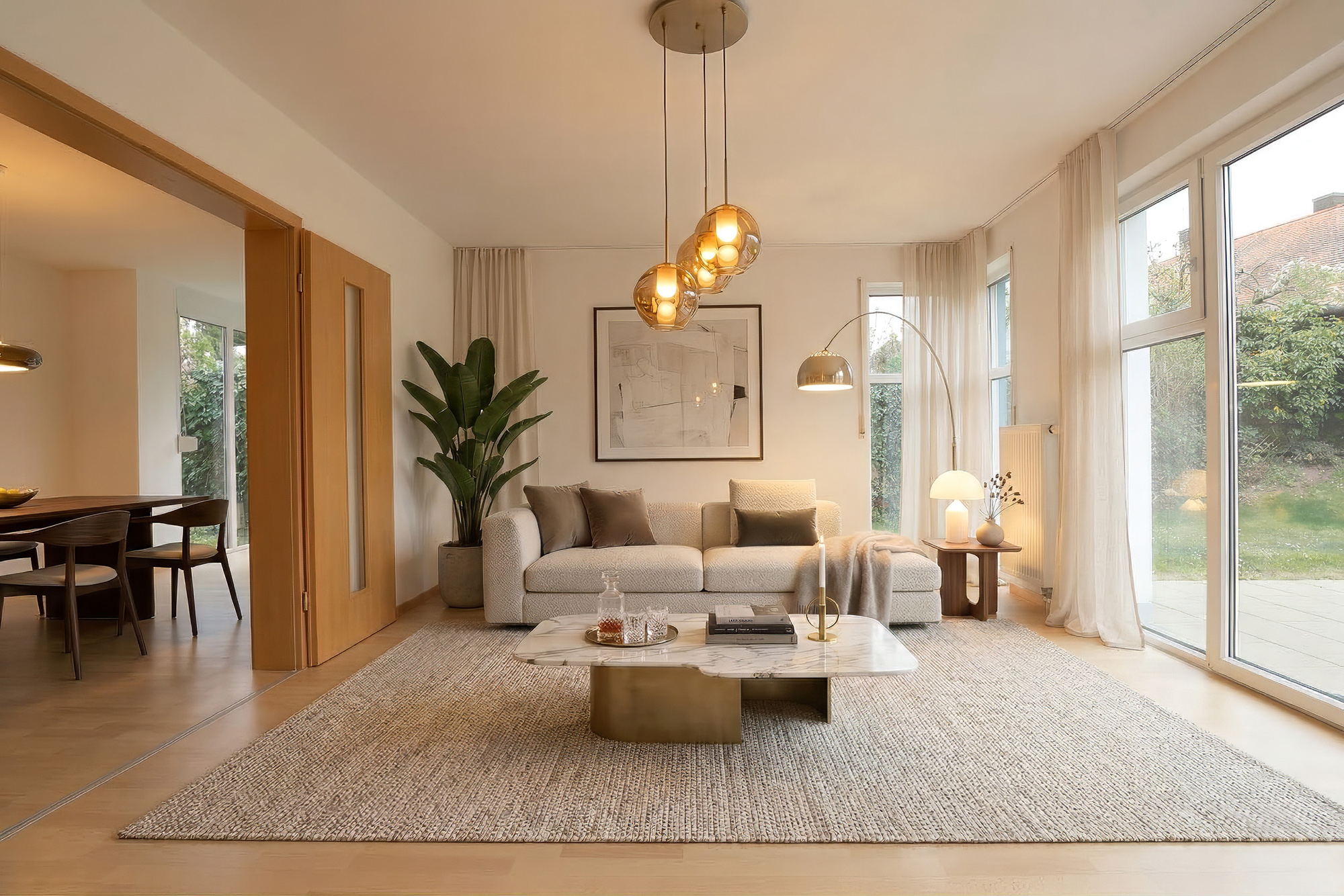 - Lichtdurchfluteter Wohn- und Essbereich mit angrenzender Küche