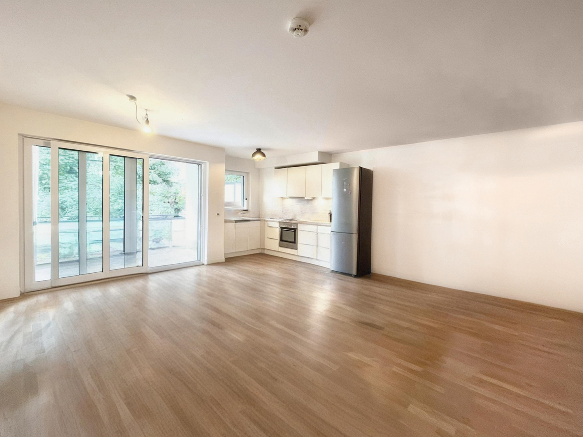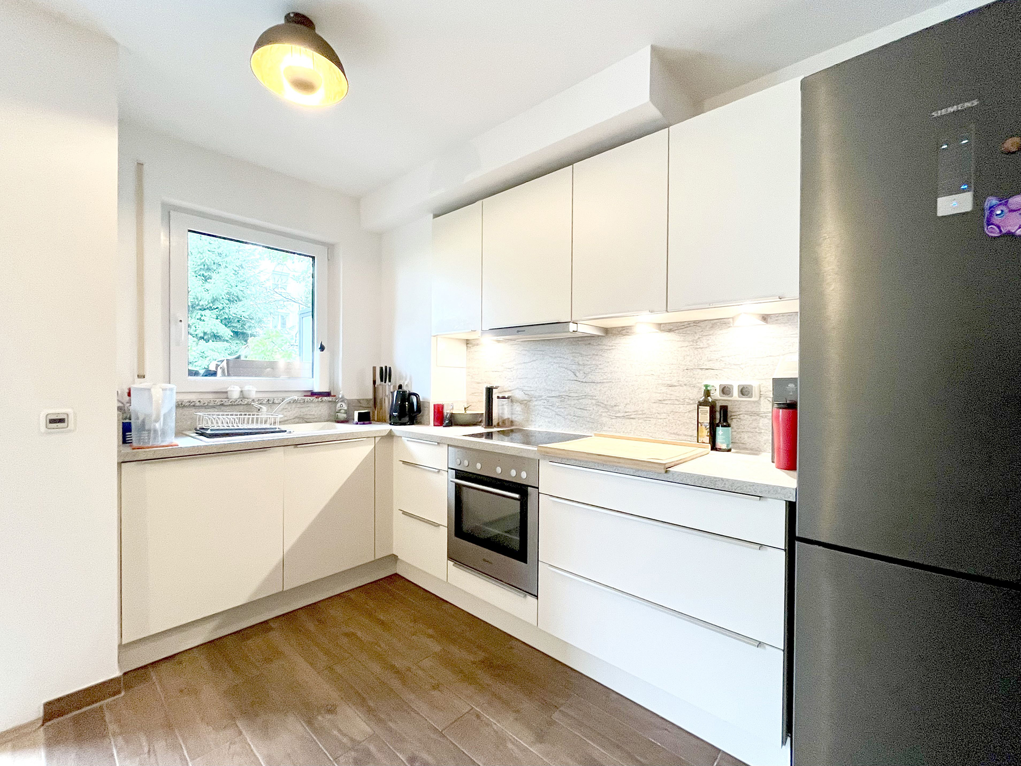 Der großzügige Wohn- und Essbereich mit offener Küche bildet das Herzstück der Wohnung. Von hier aus gelangen Sie auf den ca. 12 m² großen Balkon (brutto), der zum Entspannen im Freien einlädt.