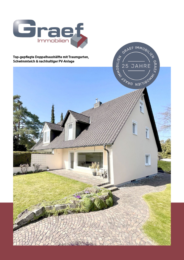 Diese Doppelhaushälfte vereint hochwertigen Wohnkomfort, nachhaltige Technik und ein unvergleichliches Gartenerlebnis mit Naturschwimmteich – ein Zuhause, das sofort begeistert. Top gepflegt, nahezu einzugsfertig und in ruhiger Wohnlage von Gräfelfing gelegen, bietet das Anwesen die perfekte Kombination aus Ruhe, Privatsphäre und bester Anbindung an München. Ein Traumobjekt für anspruchsvolle Familien, Paare oder Naturliebhaber.